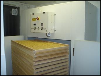 Nos pâtes fraîches étalées sur les clayettes du séchoir pour séchage. |